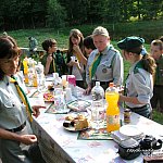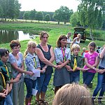 5 lipca 2013 r. zostało zorganizowane ognisko kończące rok harcerki 2012/2013. Całość przygotowały nasz trzy nowe harcerki, które ukończyły Kurs przewodnikowski ?Granatowe Kamienie? organizowany przez zaprzyjaźniony Hufiec Włocławek ? Miasto. Ognisko przygotowały: dh. Renata Lewandowska, dh. Katarzyna Haus i dh. Zofia Pijanowska. W przygotowaniach pomagała również dh. Kamila Jakubiak i dh Dawid Jakubiak. Na ognisko również zostali zaproszeni rodzice naszych druhów, którzy uczestniczyli w ważnych wydarzeniach swoich pociech. Podczas ogniska nastąpiło podsumowanie biegu na chustę i zrealizowanie zadań związanych z awansami na wyższe stopnie. Pięcioro druhen i jeden druh po zaliczeniu zadań otrzymało prawo noszenia chusty drużyny, które osobiście założył im drużynowy. Tym samym awansowali z ?biszkopta? na pełnoprawnego członka drużyny. Natomiast wolę przynależenia do drużyny wyrazili ?biszkopci? dh. Kamila Jakubiak i dh Dawid Jakubiak, którzy otrzymali chusty biszkoptowe. To właśnie dzięki nim mogliśmy spędzić miłe popołudnie w urokliwej części Szubina Wsi. Kolejnym punktem wieczoru było nadanie oraz wręczenie zdobytych sprawności ? a było ich kilka? Następnie były awanse na wyższe stopnie harcerskie potwierdzające kierunek rozwoju i wychowania naszych harcerzy. Jak to w harcerstwie bywa, nie mogło zabraknąć też zabaw i pląsów, w których uczestniczyli rodzice. Wszyscy się pysznie bawili! Dodatkowo nasze druhny przygotowały słodki poczęstunek, kawę, napoje i pieczoną kiełbaskę. Na pochwałę zasługuje marchewkowy placek upieczony własnoręcznie przez naszego 12 letniego druha. Był naprawdę wyśmienity! Po poczęstunku drużynowy wręczył wszystkim członkom drużyny specjalnie przygotowane kubki >>>> w wersji limitowanej, z oznaczeniami naszej drużyny, stanowiące piękną pamiątkę wkłady pracy na rzecz rozwoju własnego i drużyny. Niestety, wieczór szybko nadszedł, a przed nami jeszcze pakowanie. Nazajutrz musieliśmy się stawić na obozie w Smerzynie. Podobne kubki mamy jeszcze przygotowane dla osób, które pomagały i wspierały naszą drużynę w realizowaniu zadań i działań statutowych i metodycznych w roku harcerskim 2012/2013. Niebawem zjawimy się osobiście, aby podziękować za współpracę i wsparcie.