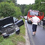 W dniu 22.07.2013 r. zastęp gaśniczy GBA z OSP Rynarzewo i zastęp specjalny SLRt z JRG Szubin wyjechał do zdarzenia, gdzie zastano s/o Fiat Cinquecento, który uderzył w przód s/o Opel Vectra. Działania zastępów polegały na zabezpieczeniu miejsca zdarzenia, odłączeniu instalacji elektrycznej, zebraniu z jezdni płynów eksploatacyjnych (zużyto 5kg compaktu). Rozbite samochody usunięto na pobocze. Na miejsce przybył zespół pogotowia ratunkowego i radiowóz policji. (foto poniżej)
