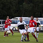 Czwartej porażki doznali piłkarze Szubinianki Szubin. Zespół Wiesława Stepczyńskiego na własnym boisku uległ 0:1 Kujawiance Izbica Kujawska. W drużynie Szubinianki przeciwko Kujawiance zabrakło kontuzjowanego Kamila Zajdlewicza. W porównaniu z poprzednimi meczami, trener Wiesław Stepczyński dokonał pewnych roszad w zestawieniu drużyny. Na ławce rezerwowych zasiadł Przemysław Wesołek, a w pierwszej jedenastce wyszedł Dominik Krawczyk, który zagrał na lewej obronie. Mecz mógł się bardzo dobrze rozpocząć dla miejscowych. W czwartej minucie defensorom przyjezdnym urwał się Mirosław Obremski, ale niestety uderzył minimalnie obok bramki Bednarskiego. W kolejnych minutach więcej pracy miał Kazimierz Kostkowski, który na przestrzeni piętnastu minut obronił trzy bardzo groźne próby zawodników Kujawianki zza pola karnego. W 37. minucie przyjezdni wyszli na prowadzenie za sprawą Macieja Lewandowskiego, który wykorzystał świetne dogranie partnera z drużyny i z najbliższej odległości skierował piłkę do siatki. W końcówce pierwszej połowy bardzo groźne uderzenie Roberta Jurka zablokował jeden z defensorów Kujawianki. Do przerwy Kujawianka prowadziła w Szubinie 1:0.