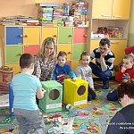 4 marca 2014 r. ?Zuchy? z Przedszkola Niepublicznego ?Słoneczko? w Szubinie uczestniczyły wraz ze swoimi bliskimi w zajęciach otwartych. Temat spotkania dotyczył środowiska przyrodniczego, a dokładnie przedszkolaki zastanawiały się nad udzieleniem odpowiedzi na pytanie: ?Co powinny robić dzieci, by nie rosła góra śmieci?? Na zajęciach milusińscy wysłuchali listu, który otrzymali od Matki Ziemi. Klasyfikowali ilustracje, dostrzegając ich pozytywny i negatywny przekaz. Dokładnie posegregowali śmieci wrzucając je do kontenerów zgodnych z ich przeznaczeniem, a także dowiedzieli się o możliwości ponownego przetwarzania odpadów czyli recyklingu. Sporym, ale bardzo miłym przedsięwzięciem było wykonanie ?Stworka Śmieciorka? z najróżniejszych odpadów. Wszyscy okazali się bardzo kreatywni i pomysłowi w swoich działaniach. Po skończonej pracy, każdy zaprezentował wyjątkowego i niepowtarzalnego stworka. Przeprowadzone zajęcia pozwoliły nie tylko zdobyć nowe wiadomości i umiejętności, ale również umożliwiły współpracę oraz wspólne spędzenie czasu ze swoimi bliskimi.