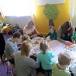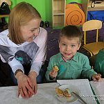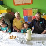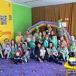 W poniedziałek, 17 marca 2014 r. dzieci z grupy dwujęzycznej ?Misie? wraz z rodzicami obchodziły dzień Św. Patryka. Jako, że najważniejszą tradycją obchodów dnia św. Patryka jest noszenie ubrań w kolorze zielonym, wszystkie dzieci przyszły tego dnia ubrane właśnie w tym kolorze. Co więcej, każde dziecko jak i rodzic otrzymał ?shamrock?, czyli trójlistną koniczynę. Przedszkolaki dowiedziały się, gdzie leży Irlandia i dlaczego nazywana jest zieloną wyspą. Ponadto poznały legendę o Św. Patryku. Następnie wyruszyły na spotkanie z irlandzkim skrzatkiem ?Leperchaun?. Ukrył on na końcu tęczy garnuszek ze smakołykami. Żeby dostać się do skarbu dzieci wraz z opiekunami musiały wykonać rozmaite zadania. Przedszkolaki z pomocą rodziców wykonały własnego skrzata, a także pilnowały, aby koniczynka wykonana z balonów nie wyleciała z magicznej chusty. Niewątpliwie wspaniałą atrakcją zarówno dla dzieci jak i ich rodziców było wspólne przyozdabianie babeczek pysznym kremem oraz magiczną tęczą. Dopiero po wykonaniu tych zadań sprytny skrzatek oddał swój skarb. Były tam słodkie niespodzianki. Nie mogło też zabraknąć skocznej irlandzkiej muzyki, przy dźwiękach której roześmiana gromadka zakończyła zabawę.