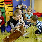 Dzieci z Oddziału Przedszkolnego działającego przy SP nr 2 w Szubinie miały niezwykłą okazję spotkać się z dogoterapeutą mgr Lidią Zielińską i jej pupilem Boni. Każda z grup miała możliwość poznać, jak człowiek może pracować z psem oraz jak można go wytrenować. Uczniowie byli zafascynowani czworonogiem i opowieściami. Każde dziecko mogło pogłaskać psa i nakarmić go. Milusińscy obdarzyli psa zaufaniem, nie bały się go, co wpływało na pozytywną atmosferę na zajęciach. Wszystkie dzieci wraz z nauczycielkami z Oddziału Przedszkolnego dziękują za poświęcony czas i przeprowadzenie ciekawych zajęć z dziećmi Pani Lidii Zielińskiej.