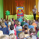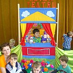 27 marca 2014 r. w Przedszkolu "Słoneczko" w Szubinie obchodzony był Międzynarodowy Dzień Teatru. Z tej właśnie okazji, Panie z przedszkola przygotowały małą niespodziankę dla wszystkich przedszkolaków. Było to kukiełkowe przedstawienie teatralne pt. "Czerwony Kapturek" - w nieco zabawnym stylu. Dzieci, jak "zaczarowane", oglądały inscenizację wpatrzone w bajkowe postaci. Po spektaklu miały też okazję dotknąć pacynek i wcielić się w role. Wszystkim dopisywały wyśmienite humory. Dzieci po raz kolejny przybliżyły się do sztuki. Ten dzień na długo pozostanie w pamięci naszych wychowanków.