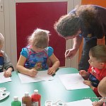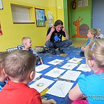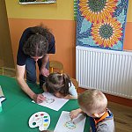 1 kwietnia 2014 r. dzieci z grupy ?Żabki? z Niepublicznego Przedszkola ?Słoneczko? w Szubinie odwiedził tutejszy artysta Pan Maciej Jeliński. Dzieci miały okazję przenieść się do Australii- krainy kangurów i zobaczyć obrazy inspirowane sztuką rdzennych mieszkańców kontynentu, Aborygenów. Żabki same miały okazję sprawdzić się w roli artysty i stworzyć własne niepowtarzalne dzieła. Z wielkim zapałem i pod czujnym okiem P. Macieja dzieci stworzyły własne przepiękne słoneczka. Galeria ich ?wielkich?, kolorowych dzieł wspaniale prezentuje się na ścianach naszego przedszkola. Serdecznie dziękujemy Panu Maciejowi za wspólnie spędzony czas i podzielenie się swoim warsztatem.