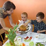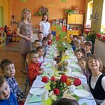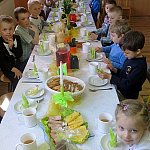 16 kwietnia 2014 r. dzieci z Niepublicznego Przedszkola ?Słoneczko? w Szubinie uczestniczyły w uroczystym spotkaniu wielkanocnym. Był to ważny dzień dla przedszkolaków. Nic więc dziwnego, że dzieci w tym dniu przyszły do przedszkola uśmiechnięte i odświętnie ubrane. Dzieci wraz ze swoimi paniami zasiadły do wielkanocnego stołu, podzieliły się jajkiem, a także kosztowały wielkanocne przysmaki. Następnie starszaki z grup ?Pszczółki? i ?Zuchy? zaprosiły młodszych kolegów na przygotowane przez nich przedstawienie pt. ?Wielkanocne kurki?. Tego dnia zostały również nagrodzone dzieci biorące udział w konkursie ?Wielkanocne witraże?. Dzieci z grupy dwujęzycznej dzieci ?Misie? miały okazje poznać angielskie tradycje wielkanocne. Wzięły udział w ?egg hunting?, czyli tradycji szukania jajek, a także z zapartym tchem rywalizowały w tradycyjnych zawodach ?egg rolling?. Niewątpliwie jednak największą radość przyniosło dzieciom otrzymanie upominków pozostawionych przez ?Zająca?. Było świątecznie, bardzo wiosennie i smacznie.