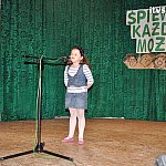 W piątek, 25 kwietnia 2014 r. już po raz jedenasty na scenie Szubińskiego Domu Kultury stanęły dzieci ,by zaprezentować swoje umiejętności wokalne podczas Gminnego Konkursu Piosenki Przedszkolnej ?Śpiewać każdy może?. Gości i rodziców powitał Tomasz Lewandowski, konferansjer konkursu. Celem konkursu było rozbudzenie aktywności muzycznej, rozwijanie i wzbogacanie emocjonalnych przeżyć dziecka. Dla niektórych dzieci był to debiut sceniczny, któremu towarzyszyła trema. Tymczasem pokonywanie lęku podczas występu przed szerszą publicznością nie było aż takie trudne, gdyż na widowni razem z dziećmi zasiedli ich najbliżsi, którzy dodawali otuchy małym artystom. W konkursie udział wzięły dzieci z: Samorządowego Przedszkola nr 2 w Szubinie, Punktu Przedszkolnego w Królikowie, Niepublicznego Przedszkola ?Słoneczko?, Oddziału Przedszkolnego przy SP w Chomętowie, Oddziału Przedszkolnego w Turze, Oddziału ?O? przy SP nr 2 w Szubinie, Oddział Przedszkolny przy Zespole Szkół w Kowalewie, Do konkursu przystąpiło 19 dzieci, którzy występowali w trzech kategoriach: dzieci 5 letnie, dzieci 6 letnie i duety. Spośród nich jury, w składzie: Jolanta Muzalewska, Robert Zdralek, Zbigniew Sabaciński wyróżniło: Oliwię Szymczak z Punktu Przedszkolnego w Królikowie, Nikolę Muchę z Oddziału Przedszkolnego przy SP w Chomętowie, Julię Zdralek z Oddziału Przedszkolnego przy SP w Chomętowie, Weronikę Rogę z Oddziału ?O? Szkoły Podstawowej nr 2 w Szubinie, Weronikę Gelert, Zuzannę Kowalską z Samorządowego Przedszkola nr 2 w Szubinie. Podczas obrad jury na scenie wystąpił zespół Allgaro ze Szkoły Podstawowej nr 2 w Szubinie pod opieką A. Rzadkiewicz i I. Sabacińskiej, który zaprezentował swoje umiejętności taneczne. Dzieci otrzymały od jurorów gratulacje, dyplomy i książki, po czym udały się na scenę by stanąć do wspólnej pamiątkowej fotografii. Organizatorzy konkursu Monika Tews-Ciężka, Katarzyna Obremska z Samorządowego Przedszkola nr 2 w Szubinie dziękują Komisji ds. Rozwiązywania Problemów Alkoholowych oraz Radzie Rodziców przy Samorządowym Przedszkolu nr 2 za sfinansowanie nagród książkowych dla dzieci.