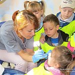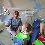 7 maja 2014 r. dzieci z grupy ?Pszczółki? i ?Zuchy? z Niepublicznego Przedszkola ?Słoneczko? w Szubinie wybrały się z wizytą do Family Dental w Bydgoszczy. Dzieci powitała Pani doktor Martyna Skorupka-Issa i zachęciła do zwiedzania gabinetu stomatologicznego. Pani doktor porozmawiała z dziećmi o higienie jamy ustnej, zdrowym odżywaniu i prawidłowym szczotkowaniu zębów. Kolejną atrakcją była ?przejażdżka? w górę i w dół fotelem dentystycznym i przegląd zębów. Za swoją odwagę dzieci otrzymały kolorowanki oraz naklejki, które będą przypominać o codziennym myciu zębów. W ramach podziękowania za poświęcony czas oraz miłą gościnę przedszkolaki wręczyły Pani doktor dyplom oraz kwiaty.