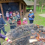 15 maja 2014 r. dzieci z grup ?Pszczółki? i ?Zuchy? z Niepublicznego Przedszkola ?Słoneczko? w Szubinie udały się na teren Leśnictwa Kowalewo do Zielonowa. Przedszkolaki swoją przygodę zaczęli, od krótkiej pogawędki z panem leśniczym na temat lasu, zwierząt, które w nim zamieszkują oraz zasad obowiązujących na obszarze leśnym. Następnie przemierzając ścieżkę edukacyjną zapoznały się z tablicami tematycznymi, z zakresu gospodarki leśnej. Zwieńczeniem spaceru był odpoczynek na łonie przyrody pod drewnianą wiatą, gdzie milusińscy mieli okazję zobaczyć poroże jelenia oraz kły dzika, a także upiec kiełbaski przy ognisku.
