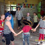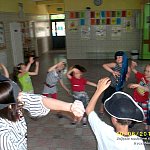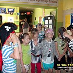 10 czerwca 2014 r. biblioteka szkolna zaprosiła uczniów na wyprawę pełną przygód pod piracką banderą, która odbyła się w Zespole Szkół w Kowalewie. Uczniowie tego dnia przeistoczyli się w prawdziwych korsarzy. Celem imprezy było rozbudzanie zainteresowań czytelniczych i promocja biblioteki szkolnej. Program tego dnia był bardzo bogaty m.in. uczestnicy zostali zapoznani z wystawą literatury pirackiej i z wiadomościami na temat piratów. Członkowie Koła Przyjaciół Biblioteki czytały dzieciom książkę pt.: ?Przygody pirata Rabarbara?. Na holu szkoły umieszczono beczkę pełną zagadek i zadań dotyczących piratów. Nie zabrakło zabaw ruchowych, takich jak przeciąganie liny czy ?wygibasów? przy szantach morskich. Dzieci brały także udział w konkursach plastycznych na zaprojektowanie wesołej flagi pirackiej i portret pirata. Prace uczniów zaprezentowano w ?Galerii pirackiej? w bibliotece. Najważniejszym punktem tego dnia było pasowanie uczniów klasy I Szkoły Podstawowej na pirata. Atrakcją dla dzieci było odczytanie mapy i poszukiwanie skarbu ukrytego w bibliotece szkolnej. Na zakończenie imprezy zaproszono uczniów na prawdziwą słodką ucztę piracką.