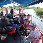 Powoli zbliżamy się do końca realizacji projektu pn ?Organizacja warsztatów rękodzielniczych, wokalno-tanecznych, Gali Pałuckiej w Szubinie, biesiady na statku oraz publikacja książki o walorach kulturowych Pałuk?, wspieranego ze środków unijnych, przyznanych przez Stowarzyszenie ?Partnerstwo Dla Krajny i Pałuk? w ramach Osi LEADER. 9 czerwca 2014 r. mali beneficjenci projektu uczestniczyli w rejsie po rzece Noteć na trasie Nakło n/Notecią ? Gromadno i z powrotem. Czterogodzinny pobyt na statku ?ŁOKIETEK? umiliły maluchom: opowieści o walorach turystycznych i krajobrazowych Pałuk, wspólna biesiada z poczęstunkiem, śpiewami i zabawą przy muzyce. W trakcie rejsu podpatrywaliśmy nadnotecką florę i faunę, w tym zwierzęta gospodarskie (krowy i konie) i ptactwo (łabędzie, bociany i inne). Niewątpliwą atrakcją wycieczki było zwiedzanie statku, zakończone indywidualnymi, pamiątkowymi zdjęciami przy sterze. Około godziny 14 przy pożegnalnym dźwięku syreny, zmęczeni, ale radośni opuściliśmy pokład i udaliśmy się w drogę powrotną do Szubina. Wycieczka, w której brały udział dzieci z Gminy Szubin była uwieńczeniem za ich trud i zaangażowanie podczas warsztatów, a także przyczyniła się do zintegrowania dwóch grup podejmujących tak wspaniałe dzieło, jakim jest kultywowanie tradycji malowniczego regionu Pałuk.