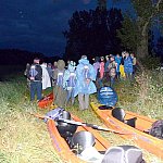 Już po raz czwarty Stowarzyszenie Inicjatyw Rozwoju Rynarzewa zorganizowało świętojański, nocny spływ kajakowy do Nakła. Odbył się on w ramach projektu ?Bezpieczny plac pod raczkiem ? wianki 2014? finansowanego przez powiat nakielski. Tym razem wrażeń było także cztery razy więcej. Wśród amatorów mocnych przeżyć ? oprócz rynarzewian - byli kajakarze z Zamościa, Smolnik i harcerze z Szubina. 17 uczestników wypłynęło, 21 czerwca 2014 r. o 22.00 z przystani w Rynarzewie, aby dotrzeć do Nakła o 6.00. Wolny nurt rzeki, niski poziom wody, zwalone przez burzę pnie drzew, zatory, całkowite ciemności z powodu dużego zachmurzenia i przelotny deszcz podniosły wszystkim poziom adrenaliny. Niezapomnianych wrażeń dostarczył także jaz w wyjątkowo ciemnym i cichym Turze. Ognisko i kiełbaski w Chobielinie oraz przepiękny brzask nad Notecią przed Nakłem wynagrodziło kajakarzom trudy wyprawy. Spływ prowadzili Michał Szweda, Zenon Słowiński i Marian Dobosiewicz. Zarząd SIRR dziękuje uczestnikom i zaprasza na dwudniowy spływ wakacyjny w połowie sierpnia 2014. Zgłoszenia u prezes SIRR Iwony Szwedy: 691123665.