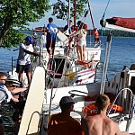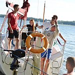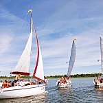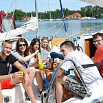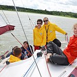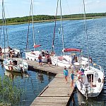 ?Krzywousty i Wyspiański jeden brat na rejsach wspólnie już 5 lat? pod takim hasłem odbyła się w czerwcu żeglarska wyprawa zaprzyjaźnionych szkół ponadgimnazjalnych naszego powiatu. Organizatorami szkolnej wyprawy byli nauczyciele WF: Marcin Kuliński ? I LO im. B. Krzywoustego w Nakle nad Notecią oraz Małgorzata Bielska-Pingot - I LO im. S. Wyspiańskiego w Szubinie. Armada siedmiu jachtów wypłynęła z Giżycka nad jeziorem Kisjano Szlakiem Wielkich Jezior Mazurskich w kierunku północnym. Wyjazd był podsumowaniem prowadzonych zajęć pozalekcyjnych z żeglarstwa, kajakarstwa, ratownictwa i miał na celu weryfikację poznanej wiedzy i umiejętności. Młodzi adepci żeglarstwa i ratownicy WOPR, poznawali topografie Mazur, locję, meteorologię i uczyli się żeglarskiego kunsztu. Rejs trwał 6 dni, podczas których młodzież przy zróżnicowanych warunkach pogodowych żeglowała Jeziorami Dobskim, Dargin, Kirsajty, Mamry i Święcajty poznając żeglarskie życie, zabytki krajobrazowo-przyrodnicze regionu oraz zwiedzając porty. Wieczorami odbywały się ogniska, gdzie przy śpiewie szant docierał do młodych adeptów żeglarski klimat. Dla wielu uczestników rejs stał się początkiem przygody z żeglarstwem, która coraz prężniej rozwija się w naszym powiecie. W tegorocznej wyprawie uczestniczyli również członkowie UKS ?Krzywousty?, którzy płynęli w ramach projektu ?Aktywna turystyka szansą na ocalenie przyrody? wspieranego przez Powiat Nakielski. Dodatkowa załoga ?klubowiczów? sprawiła, że po Mazurach pływało 50 osób.