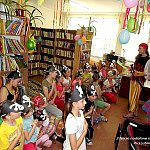 "Piracka noc w bibliotece " - pod takim hasłem odbyła się zabawa zorganizowana przez Rejonową Bibliotekę Publiczną oddział w Chomętowie. Dzieci powitała bibliotekarka Marta Szczepaniak, która wcieliła się w rolę Kapitana Haka. Na początku dzieci wykonały czapki i otrzymały pirackie imiona. Następnie musiały przejść test sprawnościowy - rzucanie do celu oraz tor przeszkód. Później odbyło się pasowanie na pirata i uczta. Dalszym punktem programu było poszukiwanie skarbu zgodnie ze znalezionymi przez dzieci wskazówkami oraz fragmentami mapy. Mali piraci po odszukaniu skarbu wspólnie przygotowali kolację, po której odbyło się czytanie bajki o "Dalszych burzliwych dziejach pirata Rabarbara" Wojciecha Witkowskiego. Impreza zakończyła się o godz. 22.00, udział wzięło 25 dzieci. Impreza została zorganizowana w ramach projektu "Zaczarowana biblioteka" realizowanego przez Rejonową Bibliotekę Publiczną w Szubinie. Sfinansowana ze środków Polsko-Amerykańskiej Fundacji Wolności w ramach Programu Rozwoju Bibliotek.