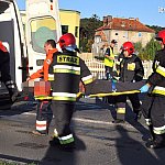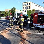 20 sierpnia 2014 r. około godz. 6.40 u zbiegu ulic Kcyńskiej, Jana Pawła II i Kcyńska Nowe Osiedle w Szubinie doszło do kolizji trzech pojazdów, samochodu osobowego marki Audi A3, samochodu dostawczego Citroen Jumper oraz rowerzysty. Na miejsce zdarzenia najechała karetka pogotowia wracająca z wyjazdu do chorego, która w pierwszej kolejności zabrała do szubińskiego szpitala cyklistę. Następnie zadysponowano dwa zastępy z Jednostki Ratowniczo-Gaśniczej nr 2 w Szubinie oraz patrol policji. Strażacy po przybyciu na miejsce udzielili pomocy przedmedycznej kierującemu citroenem, którego później przekazali zespołowi pogotowia. Według ustaleń policjantów, którzy przybyli na miejsce, sprawcą niniejszej kolizji był 20-letni kierujący samochodem dostawczym, który nie udzielił pierwszeństwa przejazdu prawidłowo jadącemu od strony miasta kierującemu Audi w wyniku czego doszło do zderzenia się dwóch aut, a jeden z nich uderzył w nadjeżdżającego od strony ulicy JPII rowerzystę. Na szczęście obrażenia cyklisty nie były groźne. Na czas działania służb ratunkowych skrzyżowanie było całkowicie zablokowane, do czasu usunięcia pojazdów i zabezpieczeniu rozlanych płynów eksploatacyjnych oraz uprzątnięciu jezdni z rozbitego szkła oraz części karoserii.