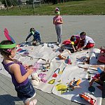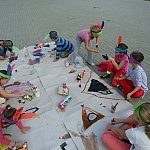 W miniony piątek, 22 sierpnia 2014 r. w bibliotece w Chomętowie odbyły się ostatnie wakacyjne zajęcia dla dzieci z programu "Zaczarowana Biblioteka". Tematem zajęć było życie Indian. Dzieci wykonały pióropusze, a następnie na dużym arkuszu papieru farbkami malowały indiańską wioskę. Ponadto dla wszystkich dzieci przygotowany został słodki poczęstunek i upominki za uczestnictwo w zajęciach. Uczestnicy letnich spotkań w bibliotece mieli okazję twórczo spędzić czas, poszerzyć swoją wiedzę i umiejętności, a przy tym dobrze się bawić. Zajęcia odbywały się dwa razy w tygodniu, prowadziła je bibliotekarka Marta Szczepaniak. Łącznie bibliotekę odwiedziło 116 dzieci. Dziękuję wszystkim uczestnikom za udział w zajęciach wakacyjnych w bibliotece.
