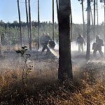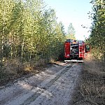 5 września 2014 r. chwilę po godz. 17.00 na stanowisko dowodzenia PSP wpłynęło zgłoszenie o pożarze lasu w miejscowości Tur - Osada Leśna między Samoklęskami Małymi, a Turem. Natychmiast na miejsce zdarzenie zadysponowano zastęp OSP Tur oraz jeden zastęp z Jednostki Ratowniczo-Gaśniczej nr 2 w Szubinie. Był to pierwszy wyjazd do akcji nowego średniego samochodu ratowniczo-gaśniczy, który szubińska jednostka otrzymała na stan 17 lipca 2014 r. >>>>. Po przybyciu na miejsce zastępów okazało się, że znacznemu spaleniu uległo poszycie. Czynności strażaków polegały na zlaniu wodą oraz gaszeniu tłumicami zarzewia ognia. Łącznie spaleniu uległo 11 arów poszycia leśnego. Na miejscu pojawili się również przedstawiciele Nadleśnictwa Szubin oraz patrol policji.