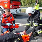 W dniach 10-11 września 2014 r. zostało przeprowadzone powiatowo-gminne ćwiczenie z zakresu zarządzania kryzysowego pk. ?ROKITKA 2014?, będące wspólnym przedsięwzięciem organizowanym przez: Starostwo Powiatowe w Nakle nad Notecią, Komendę Powiatową PSP, Komendę Powiatową Policji, Urząd Miasta i Gminy w Mroczy, Urząd Miasta i Gminy w Nakle nad Notecią, Urząd Gminy w Sadkach, Powiatową Stację Sanitarno ? Epidemiologiczną w Nakle nad Notecią oraz NZOZ Nowy Szpital w Nakle i Szubinie sp.z o.o. W dniu 10 września br. odbył się trening decyzyjny z udziałem przedstawicieli jednostek ćwiczących, podczas którego Tadeusz Sobol ? Starosta Nakielski oficjalnie otworzył ćwiczenie. Z kolei 11 września br. ćwiczenie zostało przeprowadzone w terenie. Główne działania miały miejsce na terenie gminy Mrocza w miejscowościach Kosowo i Modrakowo. W scenariuszu zainscenizowano wypadek cysterny i samochodu osobowego na drodze wojewódzkiej nr 241 w Kosowie (gm. Mrocza), konsekwencją czego było przedostanie się substancji przypominającej olej napędowy do okolicznej rzeki Rokitka. W scenariuszu założono też ryzyko przedostania się płynącej z nurtem rzeki substancji na teren gmin Nakło nad Notecią i Sadki. Zasadniczym elementem ćwiczenia była akcja ratownicza strażaków, której celem było uszczelnienie cysterny, zebranie plamy oleju, ściągnięcie pojazdów z drogi oraz ustawienie zapór na rzece. Ponadto konieczne było zabezpieczenie akcji ratowniczej przez Policję. W celu prawidłowej realizacji tego zadania konieczne było całkowite zamknięcie drogi wojewódzkiej nr 241 na odcinku Chrząstowo - Krukówko i wyznaczenie objazdów. Osobom poszkodowanym w wypadku została udzielona pomoc przez zespół ratownictwa medycznego. Niezbędne było także pobranie przez pracowników Powiatowej Stacji Sanitarno-Epidemiologicznej w Nakle nad Notecią próbek wody do badania fizykochemicznego.