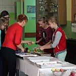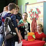 W Zespole Szkół w Kowalewie, 24 września 2014 r. biblioteka zaprosiła uczniów, rodziców i nauczycieli do wspólnej zabawy pod hasłem: ?Święto Jabłka w Bibliotece?. Celem imprezy było promowanie zdrowego odżywiania oraz promocja biblioteki. Ten dzień poprzedziły prace uczniów nad zbieraniem i poszukiwaniem informacji na temat jabłek w księgozbiorze biblioteki oraz w internecie. Kolejnym zadaniem było napisanie i ułożenie wierszyków oraz krótkich rymowanek o jabłkach. Inni z kolei przygotowywali reklamy i plakaty zachęcające do spożywania, tak zdrowego owocu. Uczniowie aktywnie włączyli się do świętowania tego dnia. Wykonali w swoich klasach dekoracje i gazetki informacyjne na temat wartości odżywczych jabłek. Pani bibliotekarka na korytarzu szkoły przygotowała wystawę pt. ?Jabłko w literaturze i sztuce?. Na ścianach wyeksponowano plakaty i prace plastyczne uczniów, które wyróżniono i nagrodzono. Na spotkaniach z panią bibliotekarką uczniowie z klas IV- VI szkoły podstawowej zapoznali się z prezentacją multimedialną pt. ?O jabłku i jabłoni? ? dowiedzieli się - Skąd się wzięły jabłka?, Jakie miały dawniej zastosowanie i jak wpływają na ludzki organizm? Koło Przyjaciół Biblioteki przygotowało scenki z jabłkiem w roli głównej ? program artystyczny dla najmłodszych. Na przerwach uczniowie brali udział w quizie wiedzy na temat jabłek oraz w konkursie wyławiania jabłek z wody. Punktem finałowym tego dnia była degustacja szarlotki, soku i innych jabłkowych smakołyków przygotowanych specjalnie przez rodziców, którzy wzięli udział w konkursie na przygotowanie najsmaczniejszej szarlotki. Zwycięzcami zostali wszyscy rodzice i otrzymali dyplomy i podziękowania od pani Karoliny Mrówczyńskiej ? Król organizatora tej imprezy.