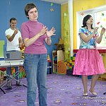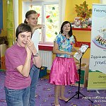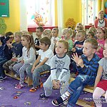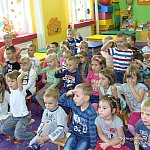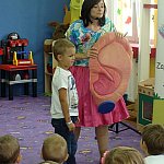 Już po raz drugi w tym miesiącu Przedszkole Niepubliczne ?Słoneczko? w Szubinie odwiedziło kreatywne studio Okrzyk Radości. Tym razem zaproszeni goście zaprezentowali program pt. ?Kiedy zamiast ucha słucha oko ? audycja z językiem migowym?. Zajęcia przeznaczone były dla starszych grup przedszkolnych ?Żabek? oraz ?Zuchów?. Dzieci zaznajomiły się z budową narządu słuchu, dowiedziały się jak należy o niego dbać oraz miały okazję nauczyć się kilku krótkich słów i zwrotów w języku migowym. Milusińscy w dużym skupieniu i z wielkim zapałem starały się dokładnie odwzorować poszczególne gesty. Na końcu wszyscy razem zaśpiewali piosenkę używając przy tym poznanych wcześniej zwrotów migowych.