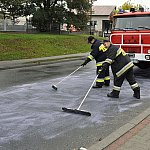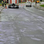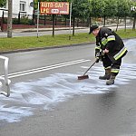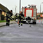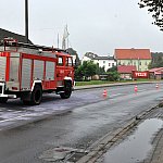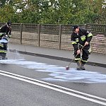 Poranek, 26 września 2014 r. był bardzo pracowity dla strażaków. Kilkanaście minut przed godziną siódmą wpłynęło zgłoszenie o plamach oleju, które ciągnęła się na całej długości ulicy Kcyńskiej w Szubinie. Po przyjeździe na miejsce strażaków z Jednostki Ratowniczo-Gaśniczej nr 2 w Szubinie okazało się, że faktycznie na drodze jest rozlany olej napędowy. Strażacy przystąpili do neutralizacji mazi olejowej poprzez rozsypanie na jednię sorbentu i rozprowadzenie go na całej powierzchni drogi. Plama oleju rozpościerała się nie tylko na ulicy Kcyńskiej, ale również na Kościuszki, Paderewskiego, Sędziwoja Pałuki i Sienkiewicza oraz na drodze krajowej nr 5 przez Łachowo i Kołaczkowo, aż do Szkocji. Do pomocy strażakom z PSP wezwano ochotników z OSP Szubin, dwa zastępy oraz OSP Rynarzewo, które rozpoczęło neutralizację plamy od Szkocji w kierunku Szubina. Sprawcą całego zamieszania był rejsowy autobus bydgoskiego przewoźnika kursujący na trasie Kcynia - Bydgoszcz, który uległ awarii. Dokładnie przerwaniu uległ wężyk dostarczający olej napędowy do silnika. Kierowca feralnego autobusu nie był świadomy, że na drogę wydostaję się olej napędowy do czasu, gdy autobus zatrzymał się w Szkocji z braku paliwa. Na miejsce wezwano także zarządcę drogi krajowej, który do prac neutralizacyjnych zadysponował piaskarkę. Ruch na wyżej wymienionych ulicach i drogach był utrudniony. Cała akcja strażaków i służb drogowych zakończyła się o godz. 10.30.