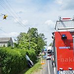 8 czerwca 2015 r. około godz. 13:50 doszło do wypadku drogowego z udziałem dwóch samochodów osobowych na drodze wojewódzkiej nr 241 w m. Chrząstowo. Policjanci z Komendy Powiatowej Policji w Nakle nad Notecią ustalają okoliczności i przyczyny zdarzenia drogowego, w wyniku którego jadący z kierunku Mroczy samochód osobowy marki Renault Megane przejechał rów i zatrzymał się pionowo na zielonym parkanie. Samochodem tym podróżowały trzy osoby. Kobietę w ciąży zabrał śmigłowiec Lotniczego Pogotowia Ratunkowego do szpitala w Bydgoszczy, natomiast poszkodowanego mężczyznę zabrał Zespół Ratownictwa Medycznego. Policjanci wyjaśniają również czy w zdarzeniu nie uczestniczył samochód osobowy marki Volkswagen Passat, który prowadziła kobieta z pobliskiego gospodarstwa.