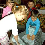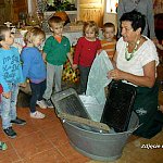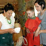 W poniedziałek, 22 czerwca 2015 roku dzieci 3 letnie z Samorządowego Przedszkola nr 2 w Szubinie wybrały się na wycieczkę autokarową do Zagrody Pałuckiej w Gąsawie. Przedszkolaki aktywnie uczestniczyły w zajęciach warsztatowych prowadzonych przez panią Henrykę Sobolewską. Bawiły się mąką, wyrabiały bułeczki i masło ze śmietany w kierzynkach /masielnicach/,kręciły kawę w ręcznych młynkach co sprawiało dzieciom radość i zadowolenie z wykonanej pracy. Bawiły się gliną wylepiając ptaszka siedzącego w gniazdku, którego przyozdobiły piórkami, tworzyły kwiatowe stroiki, dekorowały krasnala. Wszystkie własnoręcznie wykonane dzieła zabrały w prezencie do domu. W gospodarstwie przydomowym oglądały różne ptactwo domowe i hodowlane, które miały okazje nakarmić ziarnem. Poznały również dawne metody prasowania ?różne żelazka, tarkę do prania, na której próbowały prać. Dzieci poczęstowane zostały na obiad pyszną kiełbaską ,upieczoną bułeczką z masłem ?wcześniej własnoręcznie wykonaną przez dzieci. Dziękujemy pani H.Sobolewskiej za wspaniała zabawę w jej zagrodzie. Wycieczka dostarczyła dzieciom wiele radości, wrażeń i ciekawych doświadczeń.