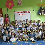24 czerwca 2015 r. był szczególnym dniem dla dzieci z grupy dwujęzycznej ?Pszczółki? z dwóch powodów. Pierwszym z nich była, już ostatnia w tym roku szkolnym ?podróż? w ramach projektu ?Podróże małe i duże?. Tym razem kierunkiem naszej wycieczki była Hiszpania. W naszym przedszkolu już od samego rana słychać było hiszpańskie rytmy. Po odprawie paszportowej dzieci odbyły lot samolotem. Po wylądowaniu w Madrycie poznaliśmy położenie geograficzne tego kraju na mapie i jego flagę. Co więcej, ?zwiedziliśmy? dwa najbardziej znane stadiony piłkarskie. Będąc w Hiszpanii nie mogła ominąć nas corrida. Dzieci miały okazję wcielić się w rolę byka, a także matadora. Odwiedził nas także wyjątkowy gość-Diego de la Vega, znany wszystkim jako Zorro. Gorący klimat tego kraju nie tylko wiąże się z pogodą, ale i gorącym flamenco. "Pszczółki" z wielką radością próbowały swoich sił w tym tańcu. Dzięki naszej ?Pszczółce? Antosi mogliśmy poznać wszystkie zakątki Barcelony. Była ona bowiem z rodzicami w tym wyjątkowym mieście i podzieliła się z nami swoimi wrażeniami, a także zdjęciami. Po naszym "powrocie" przyszedł czas na uroczyste zakończenie roku. Dzieci otrzymały pamiątkowe dyplomy, a także drobne upominki. Nasz wyjątkowy dzień zakończył się słodkim poczęstunkiem. Dziękujemy dzieciom za wspólnie spędzony rok i życzymy słonecznych wakacji!