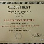Zespół Szkół Specjalnych w okresie od 17 listopada 2014 r. do 31 marca 2015 r. wykonywała zadania przewidziane regulaminem konkursu Bezpieczna Szkoła ? Bezpieczny Uczeń. Uczniowie wraz z nauczycielami mieli do wykonania dziesięć zadań, które miały na celu przypomnieć, a także pokazać, że warto przestrzegać zasad, by czuć się bezpiecznie we współczesnej szkole i świecie. Dzięki wspólnej pracy nasza placówka otrzymała tytuł ?Bezpiecznej szkoły?. Poszczególne zadania wymagały zaangażowania uczniów w sprawy bezpieczeństwa i tolerancji. Nauczyciele i uczniowie rozmawiali między innymi o ojczyźnie, historii Polski, o naszej intymności, zagrożeniach płynących z zażywania narkotyków, picia alkoholu, o ludziach innych niż my, w tym o osobach samotnych i niepełnosprawnych, a także o prawach każdego człowieka. W czasie realizacji zadań dzieci i młodzież uczestniczyli w spotkaniach z policjantami, strażakami i osobami z Miejsko ? Gminnego Ośrodka Pomocy Społecznej. Dodatkowo uczniowie wykonywali prace plastyczne, które odpowiadały omawianej problematyce. Projekt ?Bezpieczna szkoła, bezpieczny uczeń? miał dużą wartość pod względem omawianej tematyki. Z całą pewnością przyczynił się do wzrostu wiedzy uczniów na temat bezpieczeństwa własnego i innych we współczesnym świecie. Zachęcił uczniów do poznawania i poszerzania wiedzy i umiejętności z dziedziny ratownictwa medycznego. Wielu uczniów wykonywane zadania skłoniły do refleksji i przemyśleń. Koordynatorkami projektu były: Anna Kamińska, Małgorzata Grzeszczak.