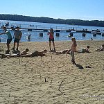Wspaniale spędzony czas na obozie w Sierakowie na zawsze pozostanie w pamięciach każdego uczestnika. Obóz Letni w Sierakowie 2015 tenisistów i podopiecznych Piotr Błaszczyka rozpoczął się 27 czerwca 2015 r. a zakończył się 7 lipca 2015 roku. Regularnie od lat obozowicze czekają cały rok by móc wyjechać do pięknego ośrodka w Sierakowie. Tego lata również było pięknie. Kadra instruktorska Piotra Błaszczyka przygotowała mnóstwo atrakcji dla swoich ulubionych sportowców i przez 10 dni fundowała atrakcję za atrakcją nie dając nawet chwili oddechu. Instruktor Krzysztof Łopuszyński wraz z Piotrem Błyszczkiem prowadzili zajęcia z tenisa ucząc i chwaląc szczególnie tych którzy rakietę trzymali po raz pierwszy w życiu. Sześć kortów tenisowych w tym jeden kryty to za mało by zmieścić taka porcję talentów. Instruktor Tomasz Lewandowski bawił się i grał ze swoimi podopiecznymi w uliczną koszykówkę na bardzo dobrze przygotowanych do tego boiskach i nawet latem hokej miał wzięcie. Instruktor Małgorzata Pezala i Filip Wypych prowadzili zajęcia z piłki nożnej oraz z siatkówki i mieli do wyboru aż 6 kapitalnych boisk ze sztuczna nawierzchnia. Gra w palanta także cieszyła się popularnością a dalekie wybicia mówiły o świetnej dyspozycji uczestników. Instruktor Agnieszka Andrzejwska prowadziła zajęcia wytrzymałościowe z fitnessu ciesząc dzieci i młodzież bardzo ciekawymi układami. Instruktor Paula Dudek i Przemysław Kwaśniewski uczyli tańca oraz wyczucia rytmu w rytm najnowszych kawałków muzycznych do których pomysły choreograficzne układały się właściwie same dzięki kreatywności i profesjonalnemu podejściu do sprawy samych prowadzących oraz uczniów. Klaudia Kirschiebel i Paulina Teska dbały o zdrowie wszystkich uczestników żeby na treningach nie zabrakło im wody a kiedy zrobiło się małe "ała" na kolanie szybko przemyły i plasterkiem zakleiły by sprawić żeby szybko wrócił uśmiech na twarz. Trenowali dzielnie i bez marudzenia bo doskonale wiedzieli że piękna plaża i czyste jezioro właściwie pod nosem czeka by ostudzić i zrelaksować.
