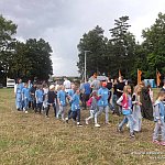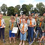 Grunwaldzka Gromada Zuchowa Ogniste Pióra z Szubina Hufiec PAŁUKI w dniach 13-19 lipca 2015 r. uczestniczyła w XLIV Zlocie Grunwaldzkim. Zanim dotarliśmy na zlot w trakcie zbiórek realizowaliśmy zadania w ramach Współzawodnictwa Drużyn Grunwaldzkich zwieńczeniem, których była kronika. Program zlotu był bardzo bogaty. Razem z zuchami w zdobywaniu plakietki zlotowej uczestniczyło troje przedstawicieli z Wielopoziomowej Drużyny Harcerskiej Feniks Szubin. Realizowaliśmy zadania z punktów aktywności takie jak np. orgiami, zajęcia pocztowe, chusta klanza, średniowieczna uroda, izba tradycji, pionierka obozowa, grunwaldzkie memory czy potyczki strażackie. Zuchy brały udział w festiwalu piosenki śpiewając dwa utwory: Dżungla oraz piosenkę o Szubinie. Uczestniczyliśmy w jarmarku warmińsko-mazurskim zdobywając pamiątkowy dyplom. Każdy zuch jak i harcerz mógł stanąć na warcie gniazda Środkowej Polski. Dodatkową atrakcją były koncerty, pokazy tańca z ogniem, bal średniowieczny. Nasza reprezentantka Julka Grabowska wystąpiła w kabaretonie przedstawiając Mariolkę w SPA i podbijając serca publiczności. W nagrodę otrzymała puchar od kasztelanki naszego gniazda. Zuchy brały udział w wędrówce zlotowej dotyczącej czasów rycerskich harcerze natomiast uczestniczyli w wędrówce z questami. Nie zabrakło również zwiedzania wioski rycerskiej i Muzeum Bitwy pod Grunwaldem jak i rozmów z rycerzami oraz obserwacji turniejów rycerskich. W ramach zadania zlotowego wzięliśmy udział w nagraniu Lip Dup?a grunwaldzkiego, gdzie każdy uczestnik mógł wykazać się niezwykłą kreatywnością w przygotowaniu wyjątkowego przebrania. Drużynowa Gromady uczestniczyła w Wielkim Sejmiku Wspólnoty Drużyn Grunwaldzkim, na którym zapadły decyzję o wyborze nowego przewodniczącego Wspólnoty. Tradycyjnie w sobotę na Wzgórzu Pomnikowym odbył się uroczysty Apel Grunwaldzki , w którym uczestniczyli harcerze i Wojsko Polskie.