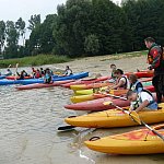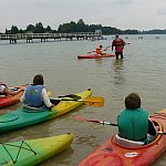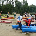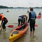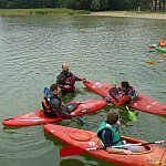 W piątek, 4 września 2015 r. w Wąsoszu grupa 29 pierwszoklasistów z Wyspiańskiego wraz z opiekunami panią Lidią Leciejewską i Małgorzatą Pingot uczestniczyła w szkoleniu kajakowym w ramach grantu powiatowego na zajęcia pozalekcyjne ?SZKOŁA NA FALI? .Młodzież szkolili doświadczeni instruktorzy kajakarstwa: Jacek Maćkowski, Tomasz Półtorak i Michał Matusiak. Pomocnikami podczas szkolenia byli dwaj uczniowie klasy drugiej Filip Matuszak i Mateusz Olszowy, którzy szkolą się już od wiosny w kajakarstwie pod czujnym okiem pana Jacka Maćkowskiego. Szkolenie rozpoczęło się krótkim wykładem z historii kajakarstwa. Młodzież poznała sprzęt, którego używają kajakarze. Następnie po obowiązkowej rozgrzewce uczniowie w dwóch grupach odbyli praktyczne szkolenie na kajakach. Jedna grupa ćwiczyła na jedynkach, a druga grupa opanowywała manewry na kajakach dwuosobowych- pływanie w szyku czy budowanie tratwy na jeziorze. Uczniowie ćwiczyli również ratowanie tonącego za pomocą kajaka oraz eskimoski. Wszyscy mogli przekonać się jak pływa się na jedynkach, jak należy nimi sterować oraz jak posługiwać się wiosłem, aby pływanie kajakiem było efektywne. Każdy z uczestników szkolenia obowiązkowo ubrany był w kapok, a instruktorzy szczególny nacisk kładli na bezpieczeństwo i udzielali cennych rad i wskazówek, aby to pływanie mogło sprawiać przyjemność. Spotkanie tradycyjnie zakończyło się ogniskiem, przy którym można było upiec kiełbaski i wymienić się wrażeniami z pobytu. Teraz wszyscy śmiało mogą wyruszać na kajakowe szlaki. Impreza odbyła się dzięki wsparciu finansowemu Starostwa Powiatowego w Nakle nad Notecią.