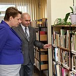 W poniedziałek, 5 października 2015 r., w szubińskiej bibliotece doszło do spotkania pracowników i działaczy kultury z prof. Małgorzatą Omilanowską ministrem Kultury i Dziedzictwa Narodowego. Minister po zwizytowaniu biblioteki i obejrzeniu wystaw czasowych książnicy, odbyła ponad godzinne spotkanie z dyrektorami bibliotek, domów kultury i muzeów powiatu nakielskiego i żnińskiego. Głównym wątkiem spotkania była kondycja kultury gminnej i szerzej instytucji kultury. Małgorzata Omilanowska przypomniała też jak wiele społeczeństwo zawdzięcza gminnym i powiatowym instytucjom kultury. Minister podkreśliła ich znaczenie. Podkreśliła też potrzebę większej konsolidacji zawodowej pracowników upowszechniania kultury, co pomogłoby wywalczyć im lepsze warunki pracy i płacy. W trakcie spotkania poruszono m.in. temat dowartościowania grupy zawodowej zajmującej się upowszechnianiem kultury i większego zrozumienia samorządów dla roli jaką pełnią instytucje kultury. Podniosły się też głosy w sprawie dofinansowania domów kultury przez Państwo. Tomasz Gronet dyrektor Żnińskiego Domu Kultury zaproponował doinwestowanie domów kultury w kraju na wzór inwestycji w Orliki np. przez zakup fortepianów. Mirosław Rzeszowski dyrektor szubińskiej książnicy, organizator i gospodarz spotkania wskazał na potrzebę zmiany ustawy o bibliotekach by instytucje te mogły szerzej pozyskiwać środki z tytułu usług i prowadzonych form pracy. Dodał też, że zaniepokojenie bibliotekarzy wzbudziła deregulacja zawodu oraz planowane zmiany w prawie autorskim. Dziękując minister za odwiedziny i dyskusje dyrektor podkreślił, że obecność minister Kultury i Dziedzictwa Narodowego w bibliotece szubińskiej poczytuje za zaszczyt i nieoficjalną inaugurację 70-lecia biblioteki.