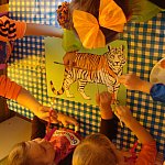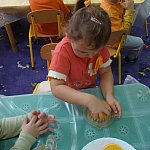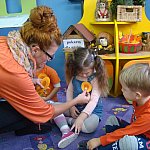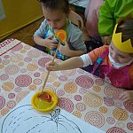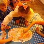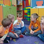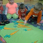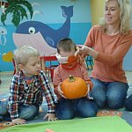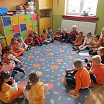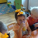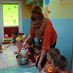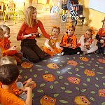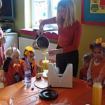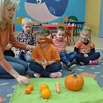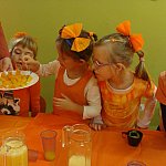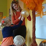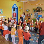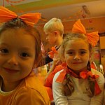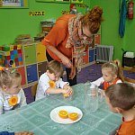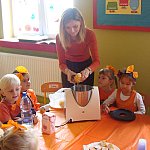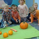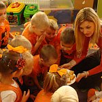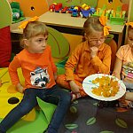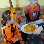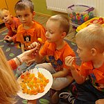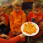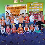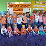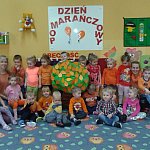 21 października 2015 r. w szubińskim ?Słoneczku? było bardzo pomarańczowo. Stało się tak, ponieważ realizowaliśmy pierwsze zajęcia z zaplanowanego na ten rok projektu ?Karuzela pór roku, czyli kolorowy zawrót głowy?. Wszystkie przedszkolaki ubrane były na pomarańczowo. W każdej grupie dzieci uczestniczyły w zabawach ruchowych, plastycznych, tanecznych, a także zgadywały zagadki. ?Misie? , mimo zasłoniętych oczu wspaniale odgadły nazwy warzyw i owoców. ?Żabki? przygotowały pyszne babeczki marchewkowe, a ?Zuchy? stworzyły marchewkowe ludki. ?Pszczółki? natomiast stały się obywatelami Krainy Soczystej Pomarańczy, w której zobaczyły magiczne drzewo i skosztowały pomarańczowych przysmaków. Wszyscy świetnie się bawili i niewątpliwie pomarańczowe warzywa i owoce polubili.