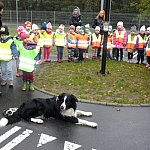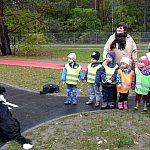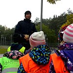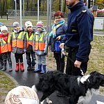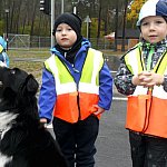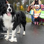 Okres przedszkolny to okres życia dziecka, który nacechowany jest aktywnością poznawczą, chęcią uczenia się. My dorośli dbamy o bezpieczeństwo naszych dzieci, kształcimy właściwe postawy, dlatego też w ramach realizacji programu własnego ?Zdrowy i bezpieczny przedszkolak to ja? w poniedziałek 19.10.2015r. dzieci z dwóch grup przedszkolnych Samorządowego Przedszkola nr 2 w Szubinie wyruszyły na wycieczkę do Miasteczka Ruchu Drogowego Parku i Wypoczynku w Myślęcinku. Na dzieci czekał pracownik Straży Miejskiej w Bydgoszczy p. Krzysztof Gawrych, który przeprowadził zajęcia profilaktyczno- edukacyjne dla dzieci 4 i 5 letnich. Przedszkolaki utrwaliły zasady bezpiecznego przechodzenia na drugą stronę jezdni z sygnalizacją świetlną i bez. Dzieci poznały znaki drogowe, a także dowiedziały się dlaczego warto nosić elementy odblaskowe. . Na dzieci czekała również niespodzianka, spotkanie z psem ?Wokerem? rasy Border Collie. Pies wzbudził ogromna sympatię i zainteresowanie dzieci. Przedszkolaki zdobyły poprzez praktyczny pokaz wiedzę na temat właściwych zachowań w kontakcie z obcym psem. Dzieci utrwaliły postawy jakie należy przyjąć w momencie ataku psa. Bardzo dziękujemy p. Krzysztofowi za atrakcyjne zajęcia przeprowadzone dla przedszkolaków z grupy ?Smerfy? i ?Pszczółki?.