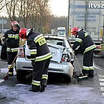 27 października 2015 r. przed godziną 16.00 na drodze krajowej nr 5 w miejscowości Dąbrówka Słupska doszło do wypadku z udziałem osobówki i dwóch samochodów ciężarowcy. Na miejsce zdarzenia zadysponowano dwa zastępy z Jednostki Ratowniczo-Gaśniczej nr 2 w Szubinie, pogotowie ratunkowe oraz patrol policji z Sekcji Ruchu Drogowego w Nakle nad Notecią. Ze wstępnych ustaleń, kierujący osobówką chciał z drogi krajowej skręcić w lewo do Dąbrówki Słupskiej, niestety jadący za nim Tir marki Volvo nie wyhamował i uderzył w tył osobówki, która przepchnięta została na drugi pas jezdni wprost pod nadjeżdżającego kolejnego Tira marki Volvo. W wyniku tego zdarzenia poszkodowany został kierujący samochodem marki Opel Astra, którego przewieziono na dalsze badania do szpitala. Na czas działania służb ratunkowych droga była całkowicie zablokowana, później wprowadzono ruch wahadłowy.