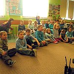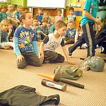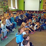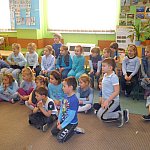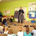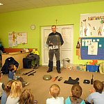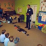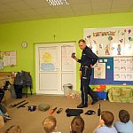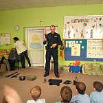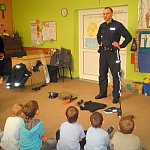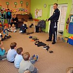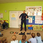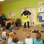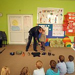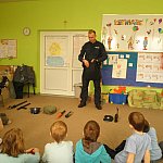 Czwartek 9 lutego 2012 r. w Oddziale Przedszkolnym przy Szkole Podstawowej nr 1 był "dniem niebieskim" z okazji "Tygodnia Kolorów". Tego dnia u sześciolatków zagościł policjant aspirant Adam Piecuch. Zaproszony gość przyniósł również mnóstwo sprzętu niezbędnego do wykonywania zawodu. Aspirant opowiedział uczniom o swojej pracy, obowiązkach, zagrożeniach oraz zaprezentował strój i sprzęt. Dzieci miały okazję z bliska przyjrzeć się takim urządzeniom jak broń, gaz łzawiący, kajdanki, krótkofalówki, alkomat, kamizelka kuloodporna, tarcza i innym. Milusińscy mieli możliwość uzyskania odpowiedzi na nurtujące je pytania. Ze względu na nadchodzące ferie aspirant Piecuch zwrócił uwagę na bezpieczeństwo podczas zimowych zabaw. Ważną kwestią było zwrócenie uwagi, aby dzieci korzystały ze sztucznych lodowisk, stworzonych specjalnie dla nich, między innymi z lodowiska przy OSiR w Szubinie przy ul. Mostowej 14.