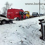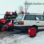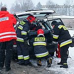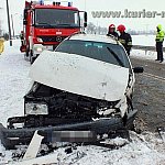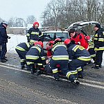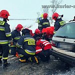 W dniu dzisiejszym 15 lutego 2012 roku około godz. 10:30 doszło do wypadku drogowego na drodze powiatowej w miejscowości Występ. W wypadku uczestniczyły dwa samochody osobowe marki Volkswagen Passat i Opel Astra. W wyniku zderzenia jeden z samochodów znalazł się poza drogą i trzy osoby zostały poszkodowane. Dwie osoby z samochodu Volkswagen Passat trafiło do szpitala w Bydgoszczy. W dniu dzisiejszym od godzin nocnych panowały bardzo trudne warunki pogodowe. W działaniach ratowniczych brały udział trzy zastępy Jednostki Ratowniczo-Gaśniczej nr 1 w Nakle nad Notecią, pogotowie ratunkowe i Policja.