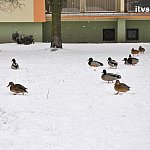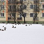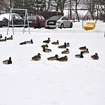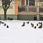 Na Osiedlu Spółdzielczym w Szubinie przy blokach J.Dąbrowskiego 10 i 6 pojawiły się kaczki. Dość spora grupa ptaków od dwóch dni żeruje na placu. Na mroźne i śnieżne dni poszukały schronie wśród bloków. Mieszkańcy osiedla czynią swoją powinność i dokarmiają je.