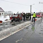 17 lutego 2012 roku około godz. 8:30 doszło do wypadku drogowego na drodze wojewódzkiej 247 w miejscowości Kcynia. W wyniku zderzenia dwóch samochodów osobowych marki Fiat Panda i Mercedesa ML320, śmierć poniósł 77-letni kierowca Pandy, mieszkaniec powiatu kwidzyńskiego. Jadące samochodem osobowym Mercedes, małżeństwo z dzieckiem trafiło do szpitala w Szubinie. Na miejsce zdarzenia zadysponowane jeden zastęp z Jednostki Ratowiczo-Gaśniczej nr 2 w Szubinie, OSP Kcynia, Pogotowie Ratunkowe z Szubina i Kcyni. Do kierowana akcją ratowniczą z Szubina skierowana Oficera Dyżurnego, na miejsce dojechało także Pogotowie Ratunkowe "S" z Nakła nad Notecią z lekarzem. Droga była całkowicie zablokowana, policjanci z Komisariatu w Kcyni wyznaczyli objazdy przez Miastowice - Dziewierzewo - Żurawie. Ze wstępnych ustaleń wynika, że kierowca Fiata Pandy, najprawdopodobniej nie dostosował prędkości do warunków panujących na drodze, zjechał na przeciwny pas ruchu, gdzie zderzył się czołowo z jadącym w kierunku Szubina osobowym Mercedesem. Okoliczności tego tragicznego w skutkach wypadku wyjaśniają policjanci z komisariatu policji w Kcyni pod nadzorem prokuratury.