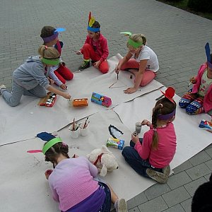 W miniony piątek, 22 sierpnia 2014 r. w bibliotece w Chomętowie odbyły się ostatnie wakacyjne zajęcia dla dzieci z programu "Zaczarowana Biblioteka". Tematem zajęć było życie Indian. Dzieci wykonały pióropusze, a następnie na dużym arkuszu papieru farbkami malowały indiańską wioskę. Ponadto dla wszystkich dzieci przygotowany został słodki poczęstunek i upominki za uczestnictwo w zajęciach. Uczestnicy letnich spotkań w bibliotece mieli okazję twórczo spędzić czas, poszerzyć swoją wiedzę i umiejętności, a przy tym dobrze się bawić. Zajęcia odbywały się dwa razy w tygodniu, prowadziła je bibliotekarka Marta Szczepaniak. Łącznie bibliotekę odwiedziło 116 dzieci. Dziękuję wszystkim uczestnikom za udział w zajęciach wakacyjnych w bibliotece.
