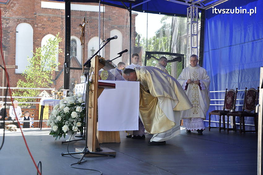 W czwartek, 4 czerwca 2015 r. odbyła się Uroczystość Najświętszego Ciała i Krwi Pańskiej. Msza Św. na placu przy Kościele pw. Św. Marcina Bpa. w Szubinie rozpoczęła się o godz. 10.15, celebrowali ją wszyscy księża z szubińskich parafii, homilię wygłosił ks. Aleksander Modrak. Po nabożeństwie wyruszyła procesja do czterech ołtarzy usytuowanych przy ul. Św. Marcina i 3-go Maja. Procesja zakończyła się przy Kościele pw. Św. Andrzeja Boboli gdzie ks. Jacek Pawelczyk udzielił Bożego Błogosławieństwa oraz podziękował wszystkim za udział i pomoc w przygotowaniu uroczystości. Później w murach kościoła odprawiono koleją Mszę Św. dla wiernych.