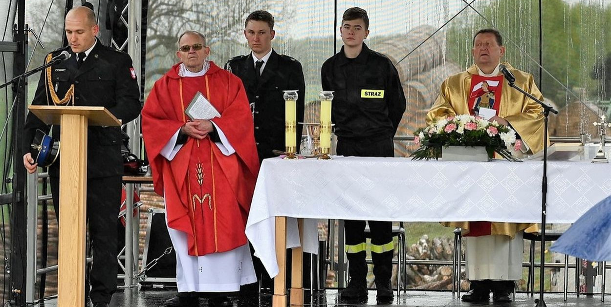 Po wciągnięciu flagi państwowej na maszt przy dźwiękach hymnu państwowego odbyła się msza św. w intencji strażaków, której przewodniczył ks. Roman Michalski kapelan strażaków diecezji bydgoskiej przy udziale ks. Jana Tutki proboszcza parafii pw. Przenajdroższej Krwi Pana Naszego Jezusa Chrystusa w Żelaźnie. Na zakończenie mszy św. uczestników pobłogosławił relikwią św. Floriana ks. Roman Michalski.