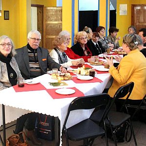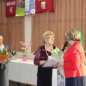 11 lutego 2017 r. na patio Szkoły Podstawowej w Kołaczkowie spotkało się około 100 osób, którzy odpowiedzieli na zaproszenie wzięcia udziału w poetyckim spotkaniu z naszą kołaczkowską poetką Heleną Wyrzykowską a jednocześnie z artystką, dla której kwiatowe rękodzieło nie ma tajemnic. Spotkanie miało charakter wernisażu - Pani Helena czytała zgromadzonym gościom swoje wiersze a Jej recytacje przerywane były występami zaprzyjaźnionych zespołów folklorystycznych - teksty wykonywanych piosenek były głównie autorstwa Heleny Wyrzykowskiej. Wystąpiły Zespoły: FOLK - ROM z Janowca, Chór TULIPAN działający przy Klubie Seniora w Łabiszynie, członkinie miejscowego zespołu KOŁACZKOWIANKI, swój, "na wesoło ", repertuar przedstawił także kabaret ADHD z Janowca. Należy dodać, że tym trzem Zespołom szefuje oraz akompaniuje na akordeonie Roman Bleja, na co dzień pracujący w Domu Kultury w Janowcu. Na zaproszenie naszej poetki odpowiedzieli i zjawili się także: Burmistrz Szubina Artur Michalak, radna Rady Miejskiej w Szubinie Anna Kijowska, Sołtys Kołaczkowa Violetta Kończal, Przedstawiciele Rady Słuchaczy Uniwersytetu Kazimierza Wielkiego w Bydgoszczy. Helenka Wyrzykowska jest słuchaczką tzw. Uniwersytetu III Wieku, rodzina bliższa i dalsza, przyjaciele i znajomi, koledzy z byłego zakładu pracy, mieszkańcy Kołaczkowa. Spotkanie prowadziła Irena Wojciechowska. Słuchacze w ciszy i skupieniu wysłuchali recytacji naszej artystki - wiersze Heleny są bliskie jej sercu, dotyczą spraw codziennych, są radosne, są smutne, patriotyczne , czasami bardzo osobiste - z wieloma każdy z nas się potrafi identyfikować i osobiście przeżywać! Pewnym zbiegiem okoliczności można nazwać to, że w 2017 roku mija 20 lat jak państwo Wyrzykowscy przyprowadzili się do Kołaczkowa - gdzie dorosły Ich dzieci, wnuki, zdobyli nowych znajomych i przyjaciół. Obecni na spotkaniu podziwiali, także jej artystyczne zdolności - wystawione kwiaty robiły furorę wśród oglądających.My także dołączamy się do gratulacji - wyrażamy nadzieję, że jeszcze niejednokrotnie będziemy mogli spotkać się z nowymi dziełami Pani Heleny.