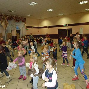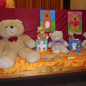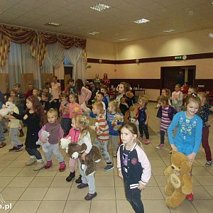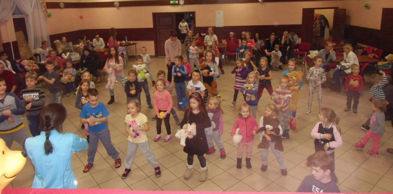 Milusińscy poznali historię pluszowego misia, którą przeczytała organizator imprezy. Wszystkie dzieci otrzymały słodycze, a najmłodsi biorący udział w konkursach dostały nagrody oraz książki.