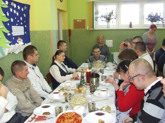 Dnia 21 grudnia 2016 r. jak co roku kilka dni przed Wigilią, spotykaliśmy się całą społecznością naszego Warsztatu Terapii Zajęciowej w Szubinie, aby wspólnie z zaproszonymi gośćmi w czasie uroczystego przedświątecznego śniadania złożyć sobie życzenia z okazji nadchodzących Świąt Bożego Narodzenia. W tym roku na śniadaniu gościliśmy Burmistrza Szubina oraz Dowódcę Szubińskiej Jednostki Ratowniczo-Gaśniczej nr 2 w Szubinie. Po śniadaniu odwiedził nas również Gwiazdor, który z uwagi na fakt, że jest w okresie przedświątecznym bardzo zajęty, zostawił prezenty dla nas u swoich śnieżynek - Kasi i Kasi. Gwiazdorku - DZIĘKUJEMY - prezenty dotarły !!!