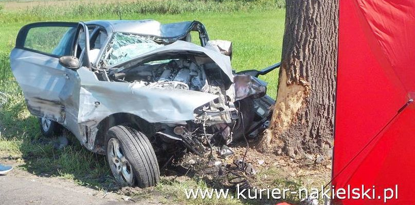 Siła uderzenia była na tyle silna, że samochód alfa romeo uderzył jeszcze w przydrożne drzewo. Śmierć na miejscu poniósł 18 latek kierujący samochodem alfa romeo, mieszkaniec gminy Nakło nad Notecią. Na szczęście nikomu z czteroosobowej rodziny - w tym dwoje dzieci - z powiatu sępoleńskiego jadącej volkswagenem nic się nie stało. Droga powiatowa jest całkowicie zablokowana