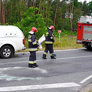 Strażacy zneutralizowali płyny, które wyciekły z pojazdów na drogę i usunęli pozostałości pokolizyjne. Na czas działania służb ratunkowych ruch na drodze wojewódzkiej odbywał się wahadłowo do czasu usunięcia pojazdów z drogi.