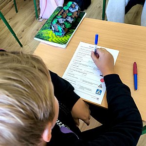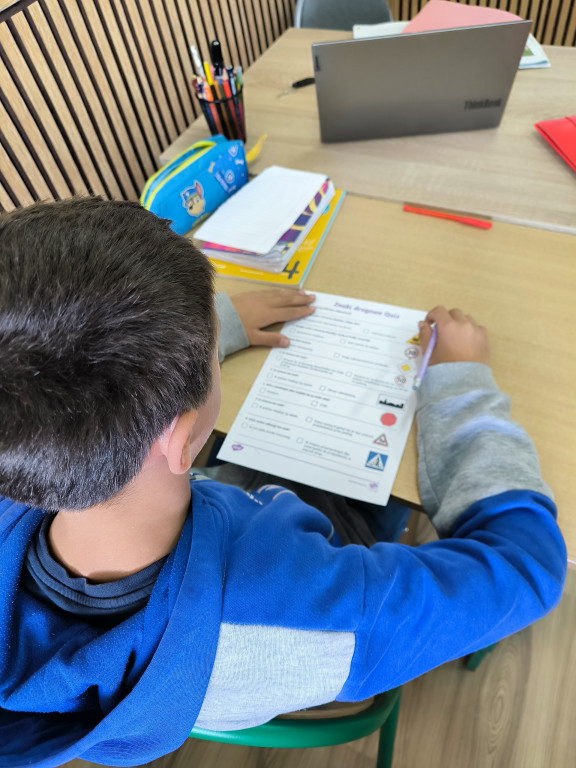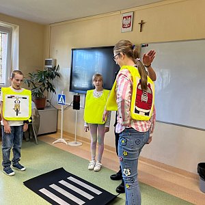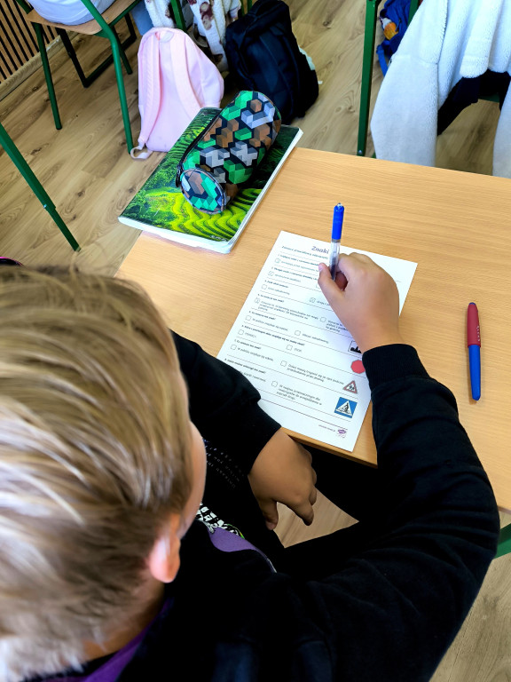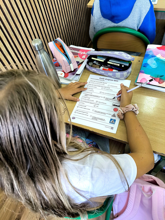W szkole odbył się już konkurs wiedzy o ruchu drogowym, w którym uczniowie klas IV–VIII sprawdzali znajomość zasad obowiązujących pieszych i rowerzystów, znaków drogowych oraz zasad bezpiecznego poruszania się po zmroku. Wszyscy uczestnicy otrzymali pamiątkowe dyplomy, a laureaci – elementy odblaskowe.