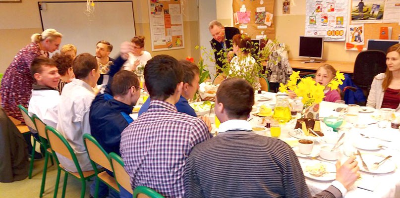 12 kwietnia 2017 r. w Zespole Szkół Specjalnych w Szubinie uczniowie wraz z nauczycielami przygotowali uroczyste śniadania Wielkanocne. Podzieleni na kilka grup gotowali i piekli tradycyjne dania, które znalazły się na pięknie przystrojonych stołach. Uczniowie przy niewielkiej pomocy zadbali o wszystkie szczegóły: pojawiły się gałązki, kwiaty, serwetki, a z części jadalnej żur, kiełbasy, jaja, sałatka, baby, ciasto i wiele innych smakołyków. Uroczyste spotkanie przy stole rozpoczęło się wspólną modlitwą, następnie przypomniane zostały tradycje nadchodzącego święta i znaczenie potraw pojawiających się tego dnia na stołach. Uczta zakończyła się mnóstwem życzeń, uścisków i uśmiechów. W imieniu uczniów i pracowników ZSS w Szubinie składamy wszystkim WESOŁEGO ALLELUJA!!!