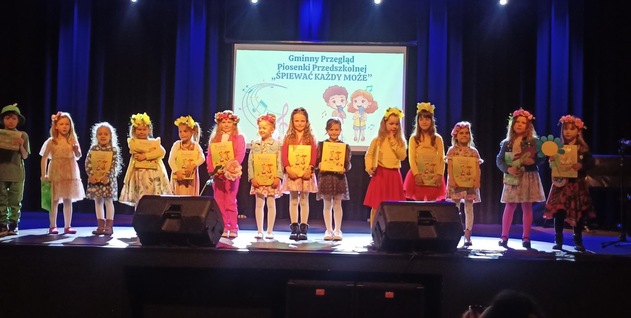Dzieci 5 i 6 letnie, występowały z ogromnym entuzjazmem, a ich radość i zaangażowanie były widoczne na każdym kroku. Na scenie prezentowały się duety oraz soliści, którzy zaskoczyli wszystkich swoimi talentami i odwagą. Rodzice nie kryli dumy z występów swoich pociech. W tej wyjątkowej atmosferze każdy uczestnik otrzymał dyplom i upominek, co dodatkowo podkreśliło, że najważniejsza była radość z muzyki i wspólnego śpiewania.